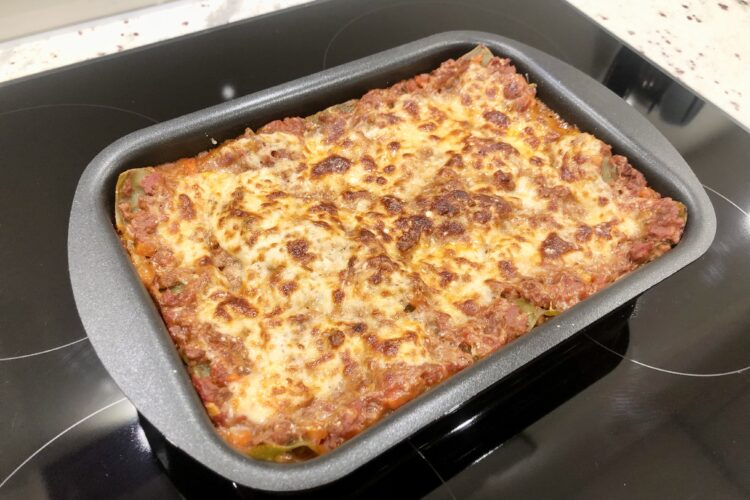 7. Die Lasagne in der Ofenmitte ca. 30 Min. backen bis die oberste Schicht goldbraun ist. Aus dem Ofen nehmen und vor dem Anrichten ca. 15 Min. ruhen lassen.