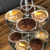 - Vor dem Servieren amerikanische Buttercreme herstellen: Die weiche Butter mit dem Puderzucker und einem Handmixer vermischen bis eine cremige Masse entsteht. Mit grüner Lebensmittelfarbe einfärben. Separat Rahm mit Rahmhalter steif schlagen.