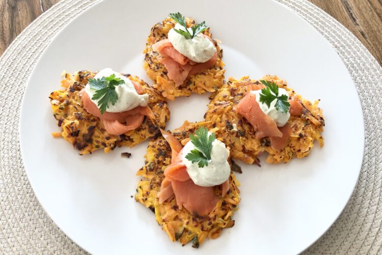 Diese Rüebli-Rösti sind echt der Hammer! Mit Rauchlachs und Crème fraîche ergänzt sind sie toll für eine leichte Hauptmahlzeit oder für einen ausgiebigen Brunch. Wirklich sehr fein!